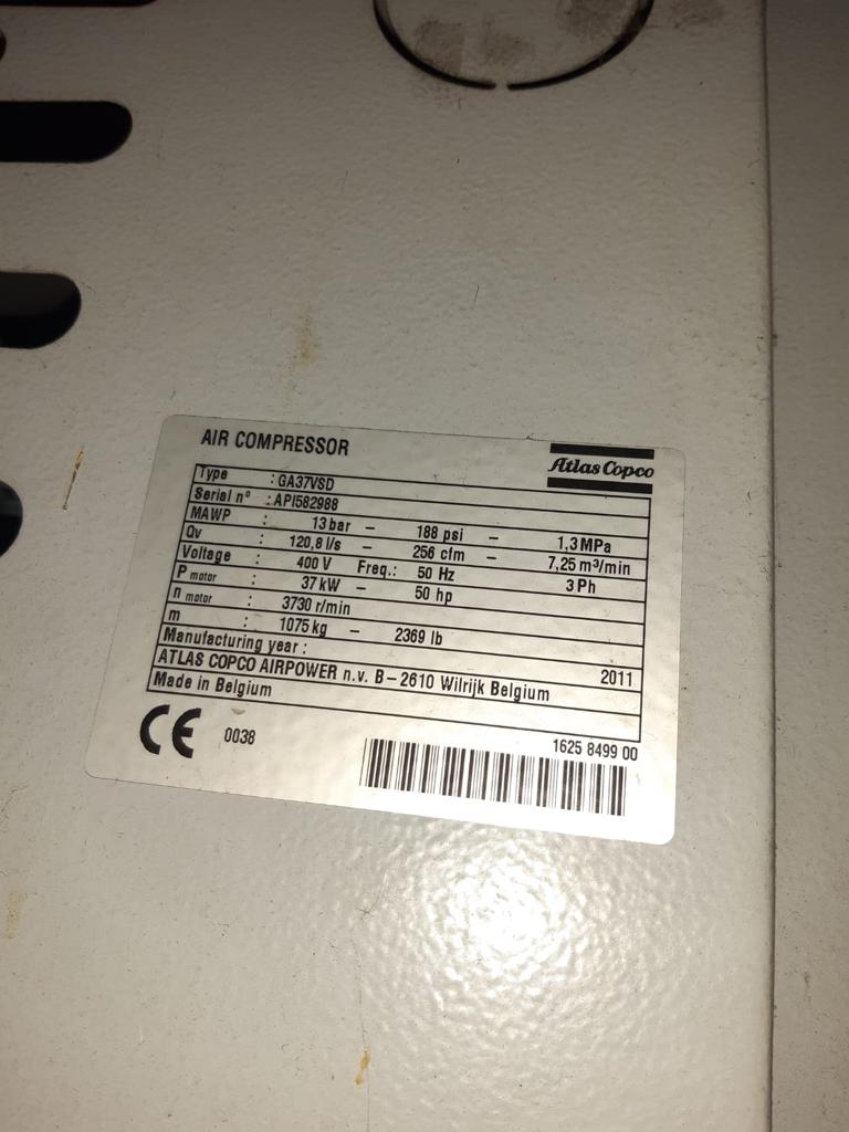 ATLAS COPCO GA 37 VSD-CE- 37 KW 13 BAR.
