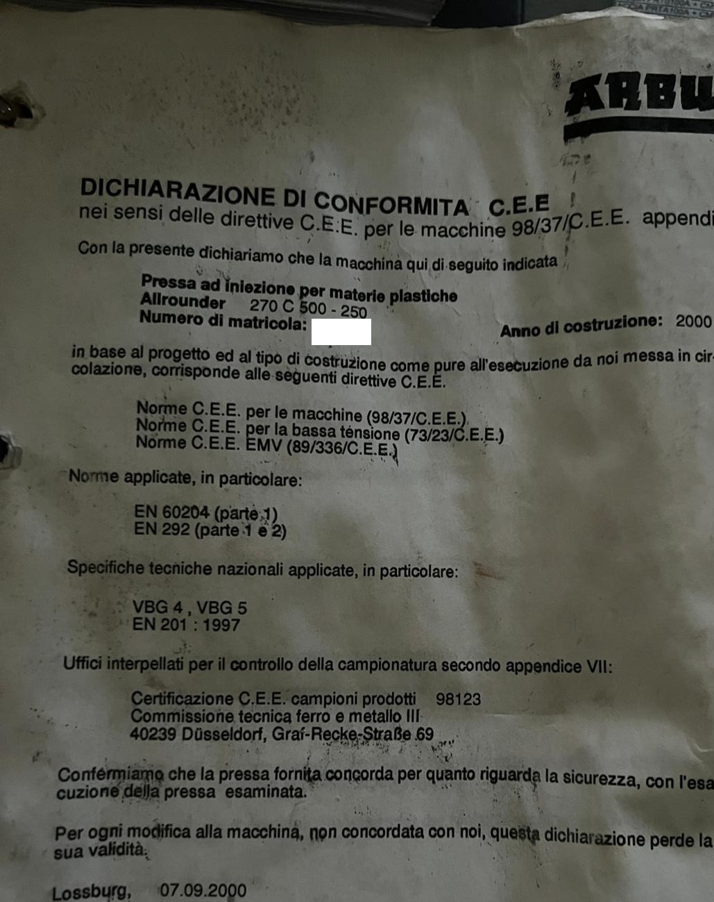 ARBURG 270-C-500-250 -CE-