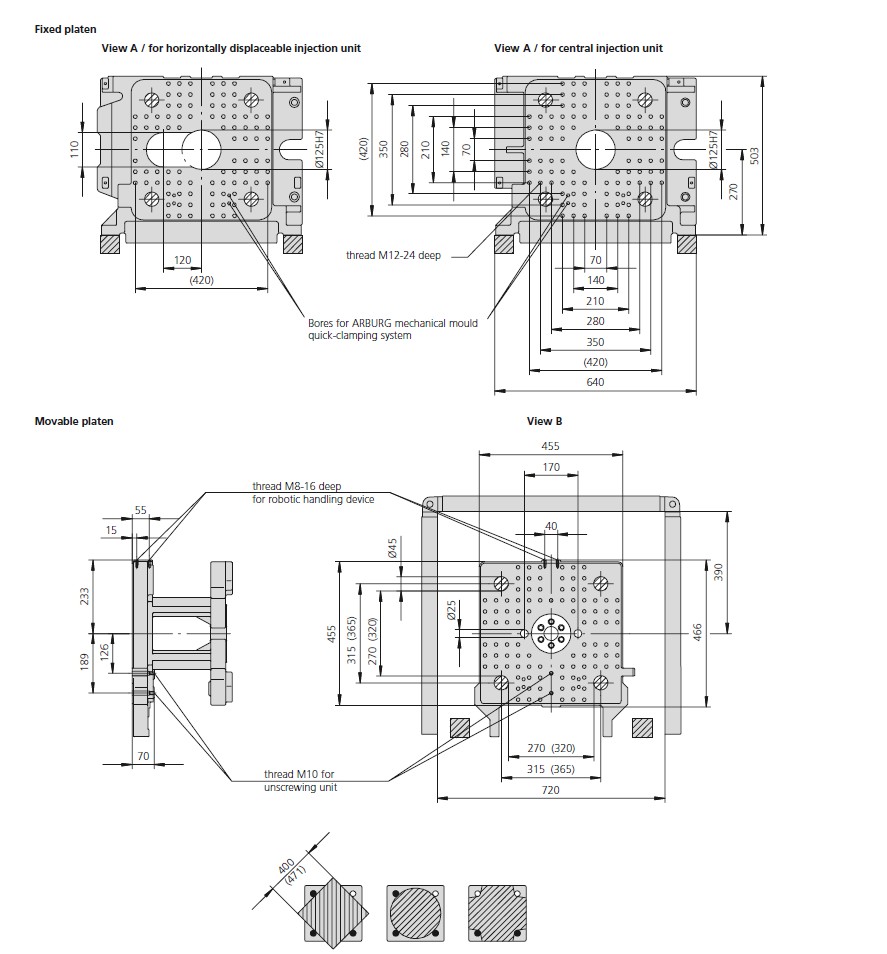 Piastra porta stampo (LxH): 446 x 446 mm