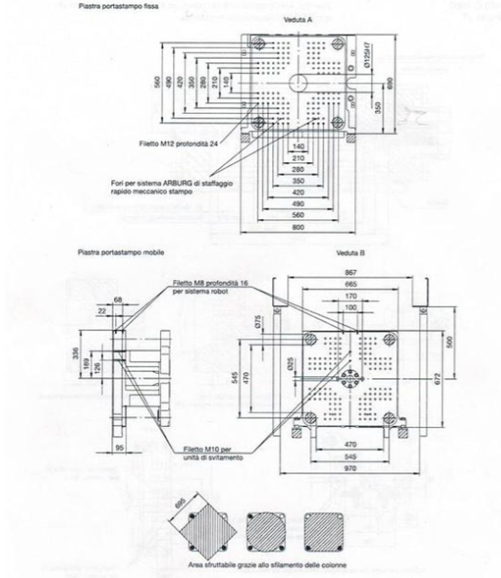 Piastra porta stampo (LxH): 650 x 650 mm