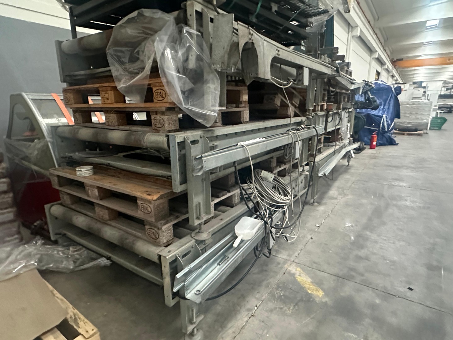 COMPOSTO DA N.6 RULLIERE MOTORIZZATE DIM. 89° N.1 SOLLEVATORE PALLETS N.1 SERIE DI RETI A PROTEZIONE CON FINECORSA DI SICUREZZA N.1 QUADRO DI GESTIONE SERIE QM MATR.QUADRO DI GESTIONE 4164 BINARI N.1 SCATOLA DI ACCESSORI N.1 INCAPPUCCIATRICE MOD.K6 CON SINGOLA BOBINA MATR.INCAPPUCCIATRICE 1167 N.1 REGGIATRICE ORIZZONTALE AUTOMATICA MOD. KR06 MATR.REGGIATRICE 6056 N. 1 PORTABOBINA ( N. 1 TRASLANTE ) N.2 CARRELLI AUTOMATICI A GUIDA LASER PER MOVIMENTAZIONE BOX Costruttore SITI-B&T GROUP SPA Modello BT3045/PL Anno di costruzione 2018 (STEMI DI MOVIMENTAZIONE LGV PIANALE AUTOMATICO ) COMPLETI DI ACCESSORI E ATTREZZATURE D'USO