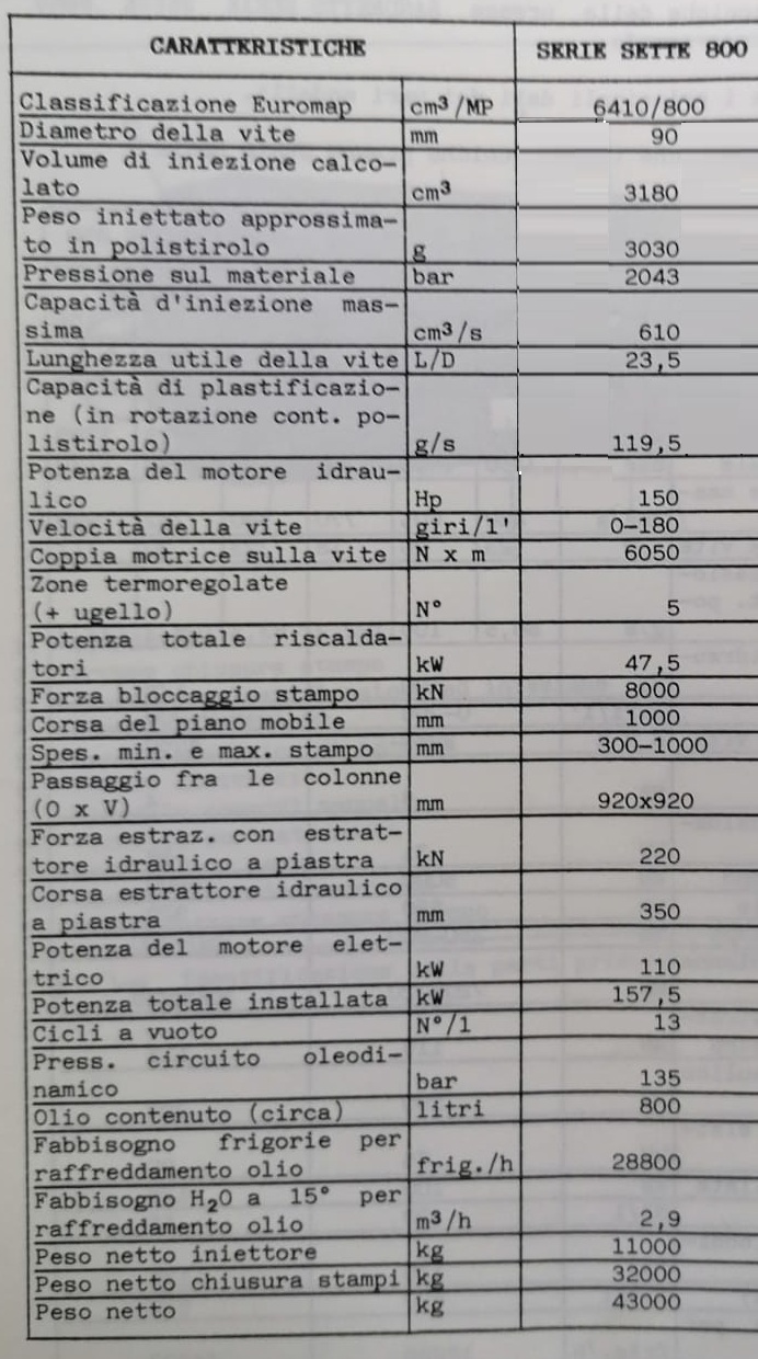 DIAMETRO VITE: 90 PASSAGGIO COLONNE: 920X920 mm SPESSORE STAMPI: MIN MAX 300-1000 MM CONTROLLO: SELEC 90