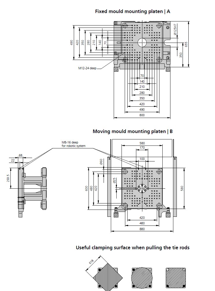 Piastra porta stampo (LxH): 570 x 570 mm