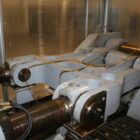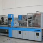 Forza chiusura: 1800 Kn Corsa apertura: 450 mm Spessore min/max stampo: 200 / 550 mm Distanza tra le piastre: 1000 mm Piastra porta stampo (LxH): 950 x 750 mm Estrazione: Elettrica Corsa estrazione max: 150 mm Forza estrazione: 37 Kn Sistema di chiusura: Ginocchiera Elettrica Tempo funzionamento a secco: 2 s./mm TIPOLOGIA GRUPPO INIEZIONE1: Elettrico Gruppo iniezione: 940 H Diametro vite: 55 mm Lunghezza vite L/D: 24 L/D Volume max: 475 cm3 Portata iniezione: 617 max cm3/s Pressione specifica iniezione: 1550 bar Peso: 16300 Kg Ingombro: 6619x1900x2247 mm Accessori: camere calde ,martinetto aria , 2 soffi aria, predisposizione martinetto olio , ugello otturatore pneumatico ,12 flussometri