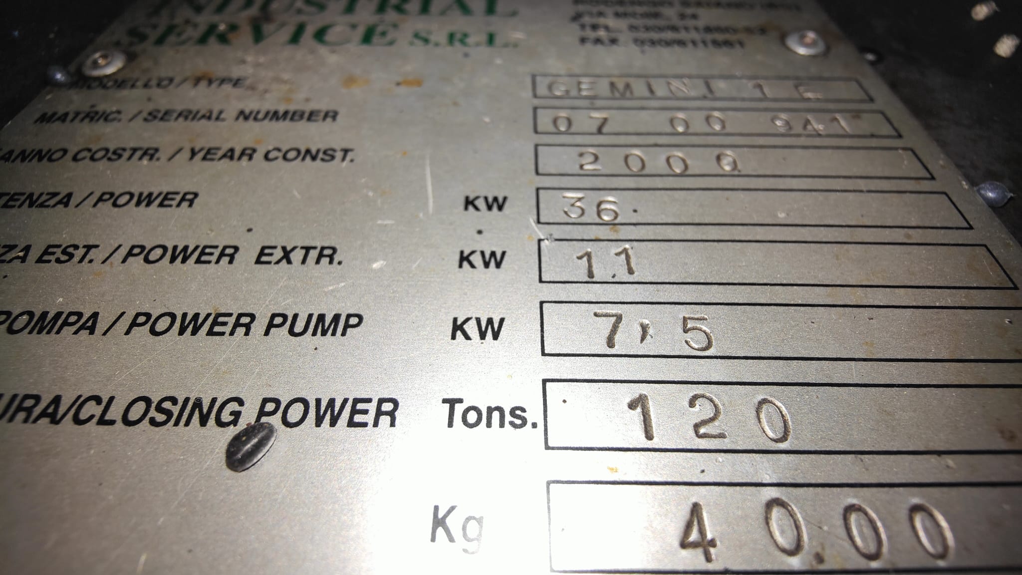 INDUSTRIAL SERVICE GEMINI 1E-CE- (ESTRUSORE)