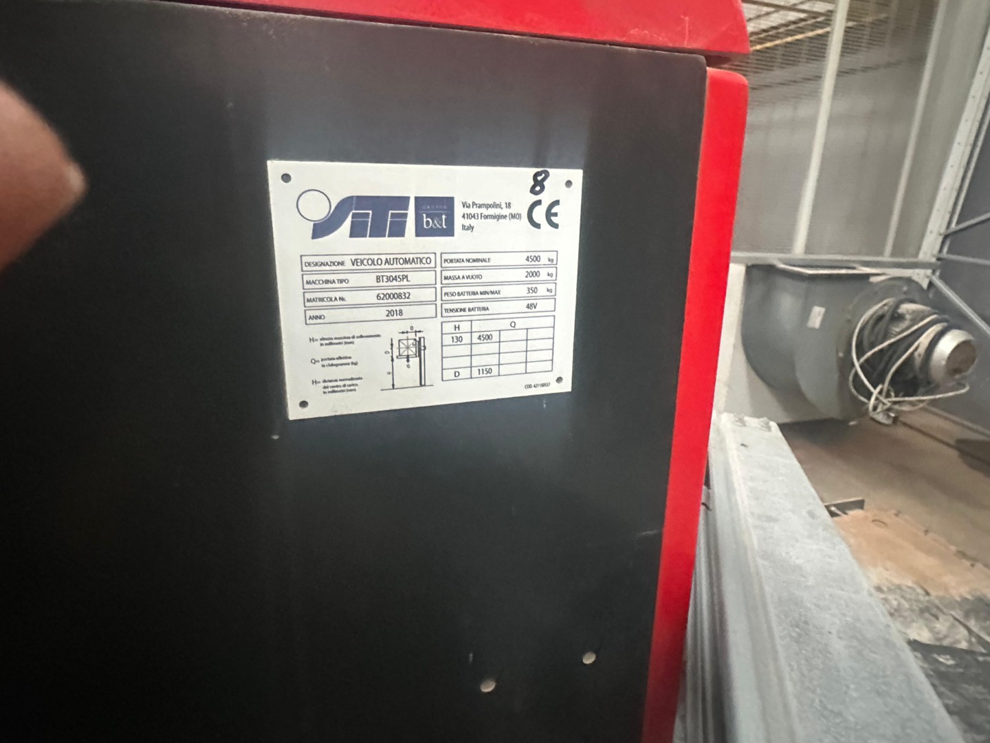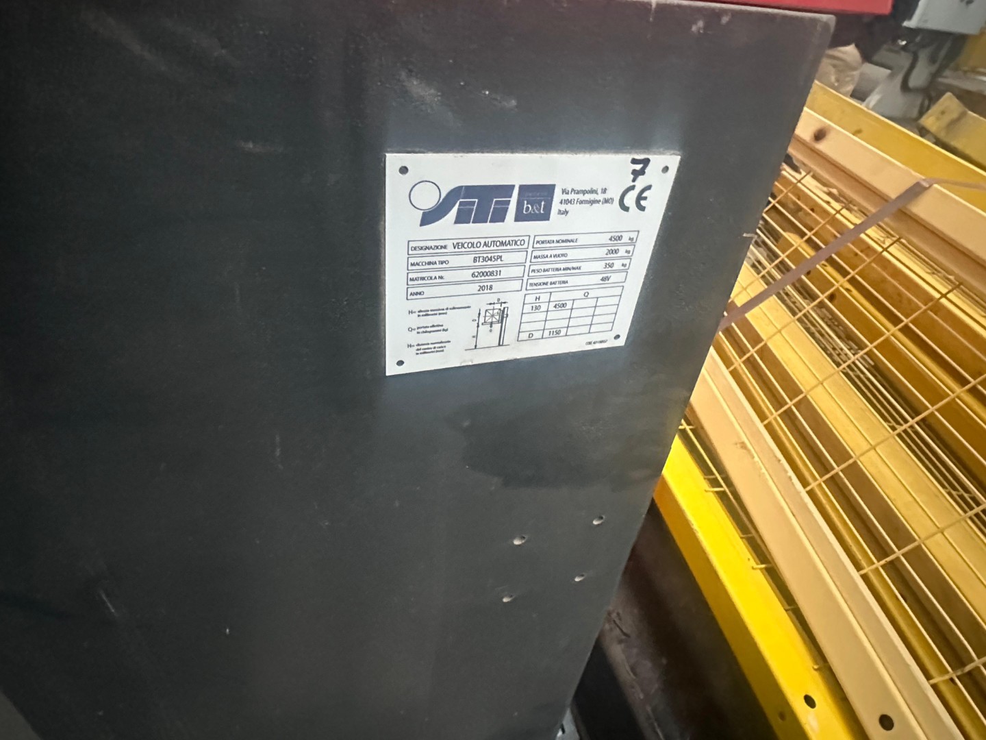 N.2 CARRELLI AUTOMATICI A GUIDA LASER PER MOVIMENTAZIONE BOX Costruttore SITI-B&T GROUP SPA Modello BT3045/PL Anno di costruzione 2018 (STEMI DI MOVIMENTAZIONE LGV PIANALE AUTOMATICO ) COMPLETI DI ACCESSORI E ATTREZZATURE D'USO